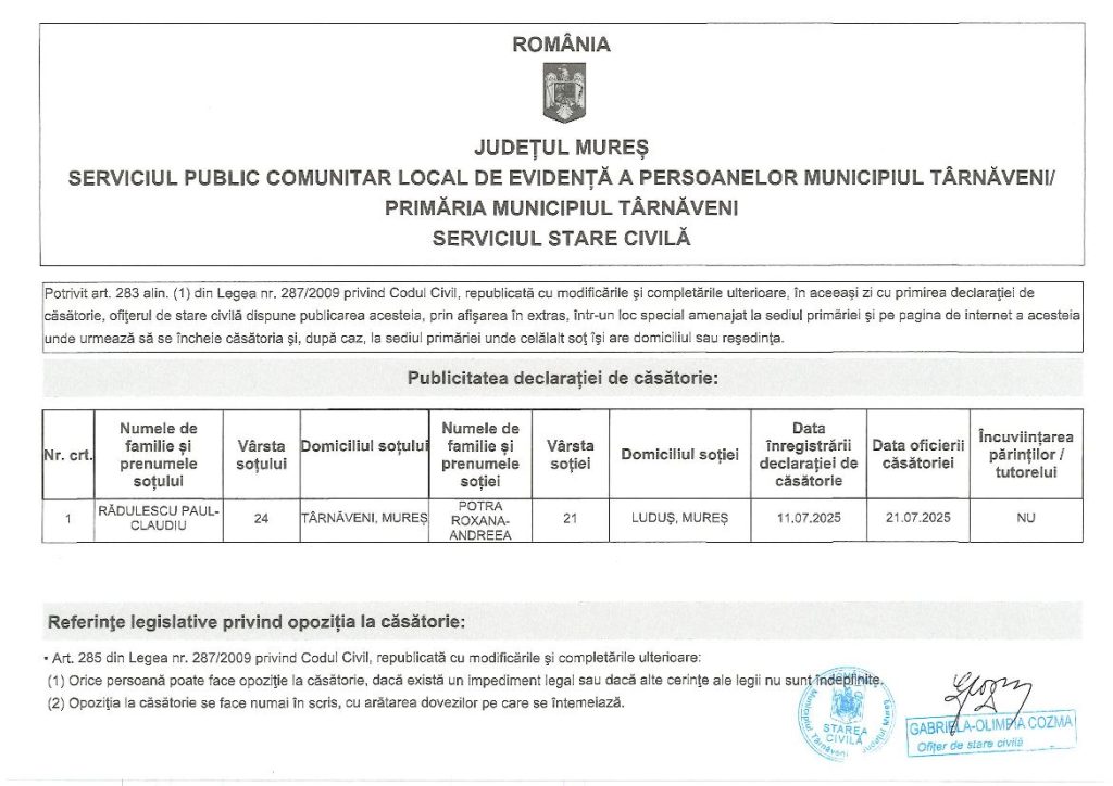 PUBLICAȚII CĂSĂTORII – 11.07.2025