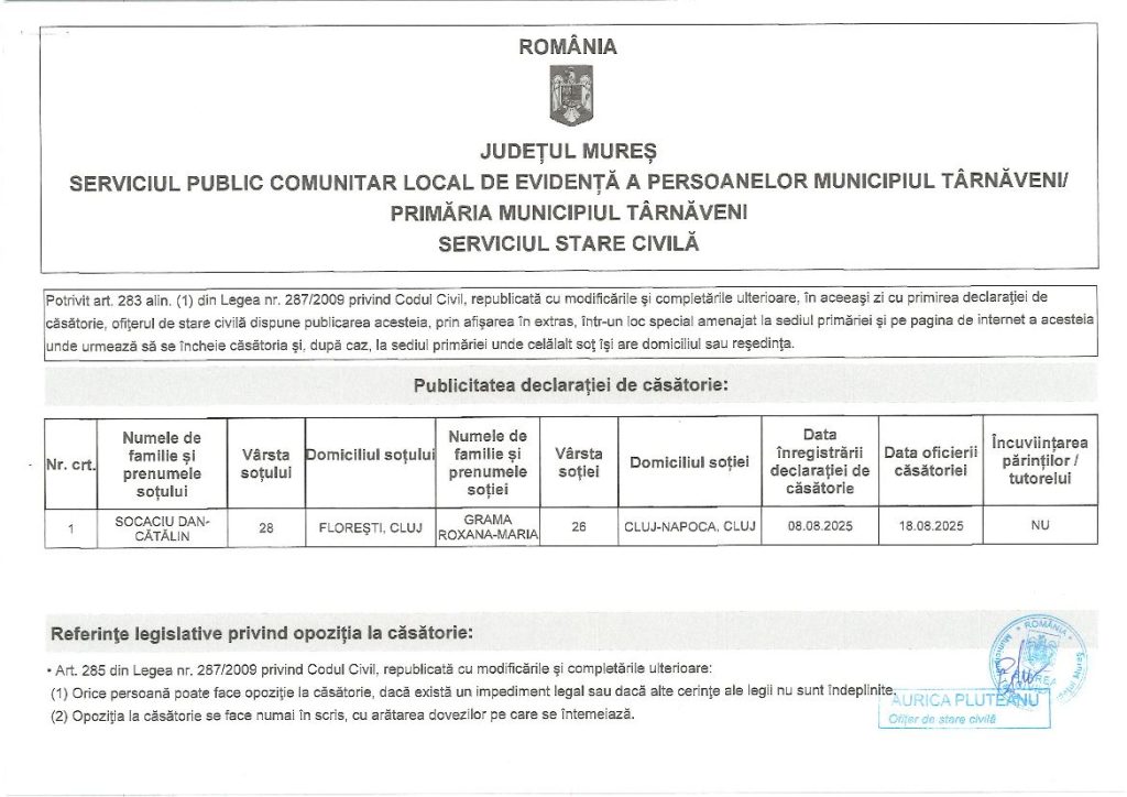 Previous Post:PUBLICAȚII CĂSĂTORII – 07.08.2025