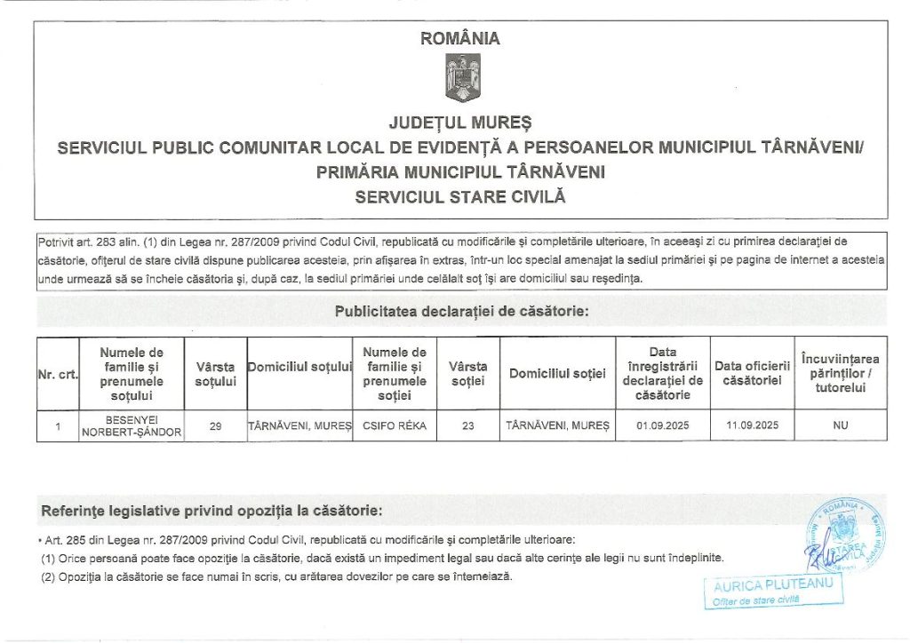 Next Post:PUBLICAȚII CĂSĂTORII – 02.09.2025