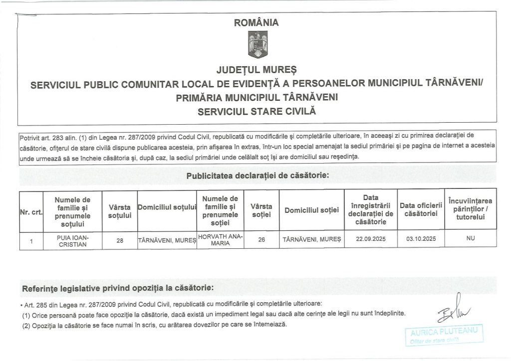 Next Post:PUBLICAȚII CĂSĂTORII – 23.09.2025