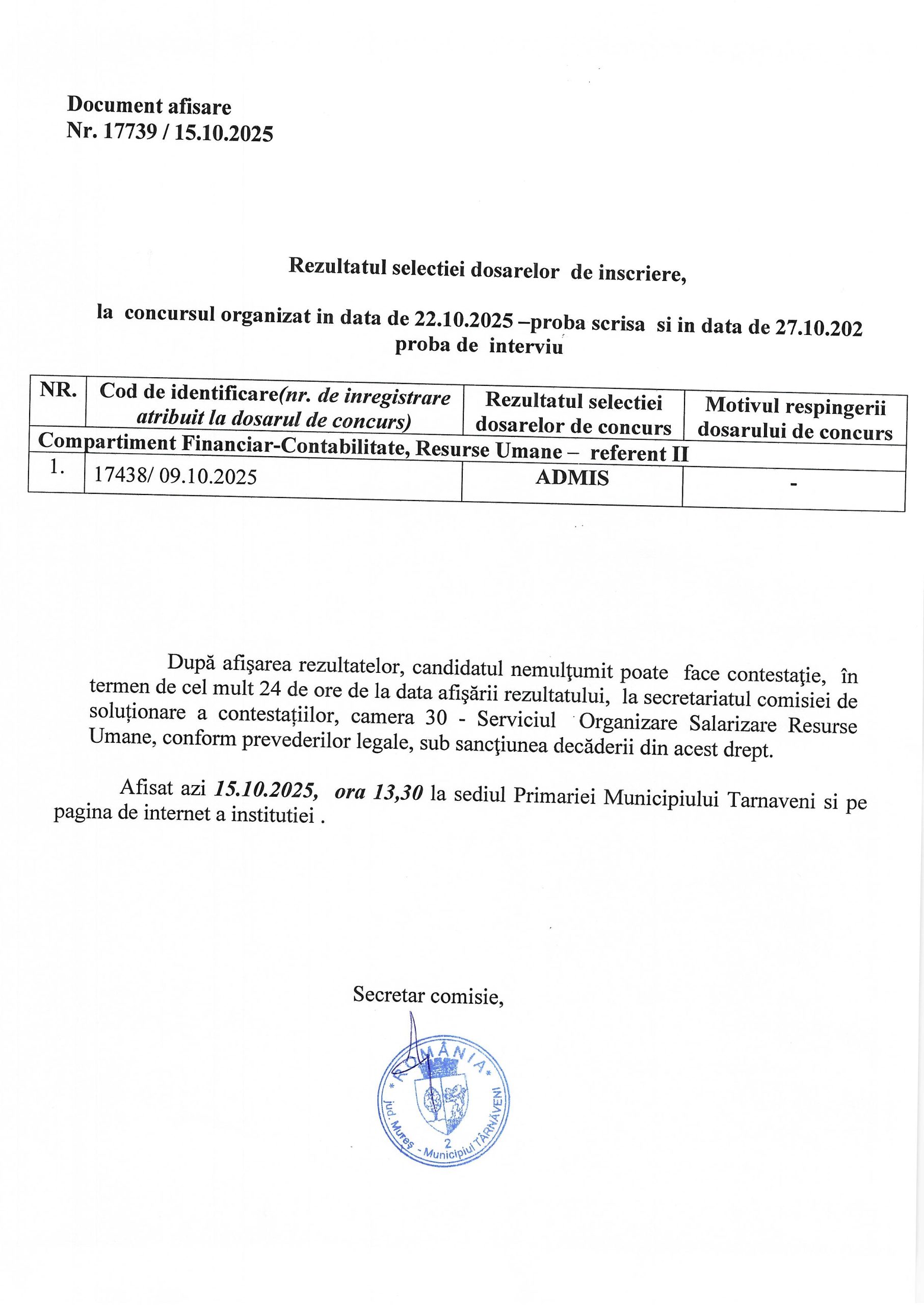 Previous Post:Rezultat selectie dosare concurs sofer 22.10.2025