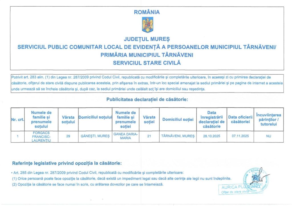 PUBLICAȚII CĂSĂTORII – 28.10.2025