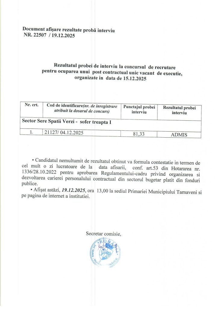 Next Post:Rezultat final al concursului de recrutare pentru ocuparea unui post contractual unic vacant de executie organizat in data de 15.12.2025