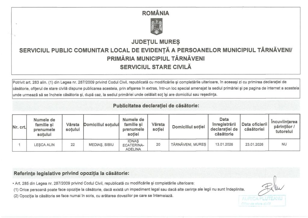 PUBLICAȚII CĂSĂTORII – 13.01.2026