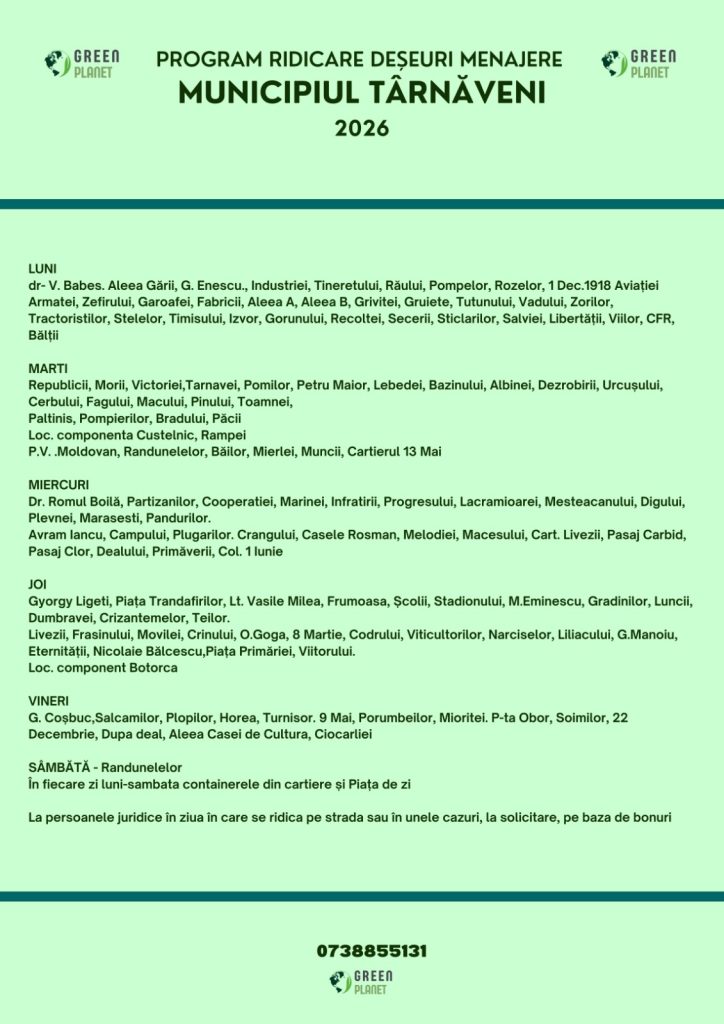 Programul de ridicare deseuri menajere si programul de colectare deseuri selective