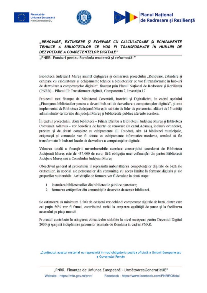 Comunicat de presa – Cursuri gratuite pentru dezvoltarea competențelor digitale de bază pentru cetățeni March 11, 2026 adm-mmm Anunturi