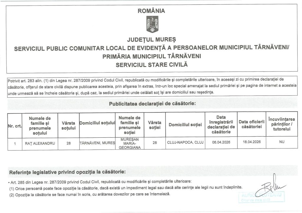 PUBLICAȚII CĂSĂTORII – 06.04.2026